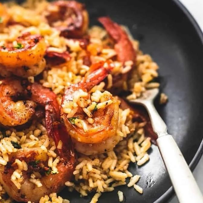4. Assemble the Bowls – Divide cooked Mexican rice between bowls. Top with warm black beans, BBQ shrimp, and sliced avocado.